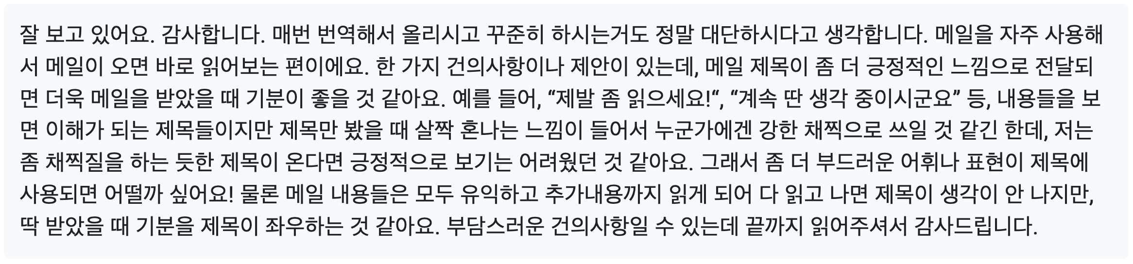 ๐ฝ๐ฝ๐ฝ ์ค์ ํผ๋๋ฐฑ (2๊ฑด) ๐ฝ๐ฝ๐ฝ